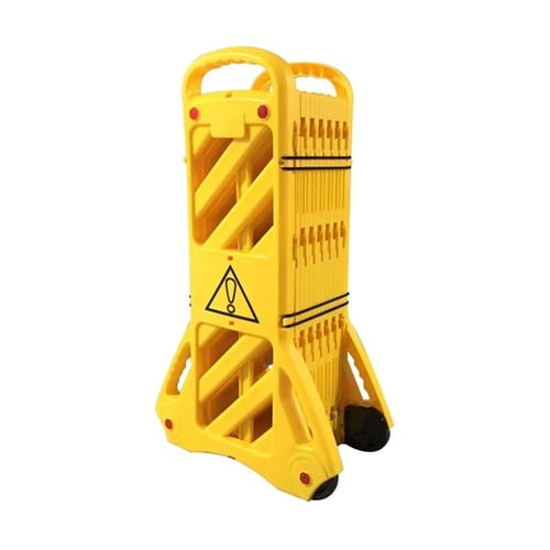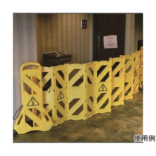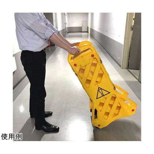 キャスター付きで楽に移動できます。折り畳み式なのでコンパクトに収納できます。警告カラーで視覚鉄器に衝突回避を促進します。展開時約3.8mまで広がります。 |