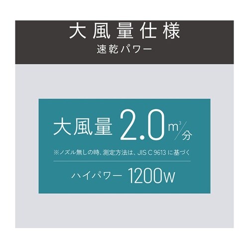 電源:AC100V 50・60Hz | 消費電力:1200W | 風量:2.0m3・分 | 温風温度:HIGH/約90℃ | 遠赤セラミックコーティン…