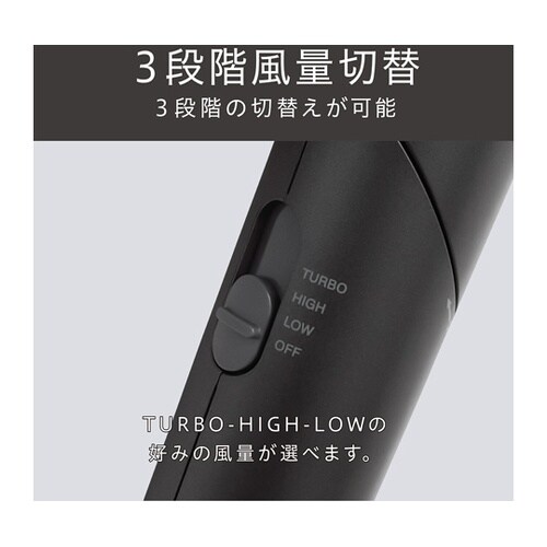 髪と地肌をやさしく守る。潤い艶ケアドライ。大風量ターボ仕様。パワフル1200W。大風量2.0m3/分。4ヶ所からマイナスイオンを発生させ、髪に届けます。スカルプ機能 地肌にやさしい低温風。