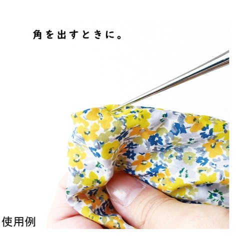 握りやすく、転がらないようにデザインされた目打ち。先端の金属部分が長いため、織物の角を整えたり、しるし付けや仮止めミシンの細かい作業にとても便利です。 |