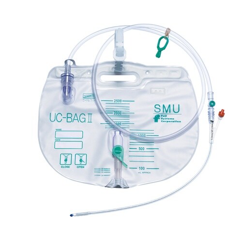 低床ベッドに対応したローハイト設計の閉鎖式採尿バッグ。導尿チューブの取り回しに便利なクリップ付。全パーツにおいてメタルフリー、ラテックスフリーですので安心です。 |
