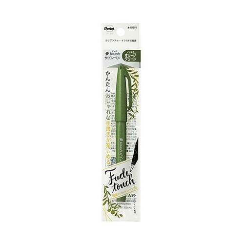 ぺんてる 筆ペン 筆タッチサインペン オリーブグリーン パック入り XSES15C−D2 1本 A09G-2156