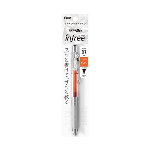 ぺんてる ゲルインキボールペン エナージェル インフリー 0.7mm オレンジ パック入り XBL77TL−F 1本 A09G-2157