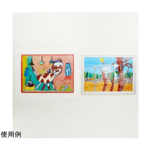 油性ペン等で縁をデザインすることもできます。連結して展示できます。展示中、ほこりが付いたら濡れ拭きできます。作品の保管用にも使用できます。 題名シール5枚・吊り下げ用フック2枚入り。 |