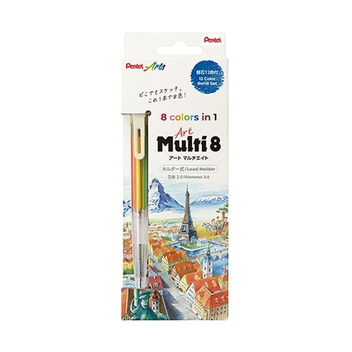 どこでもスケッチ。イラスト描きに適した8色を内蔵に専用の替え芯12色と芯削り付き。 |