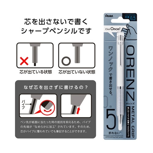 シャープペンシル オレンズ メタルグリップ 0.5mm ホワイト軸 XPP1005G2−RW 1本