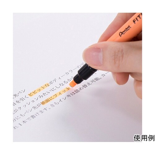 特殊なペン先で線がキレイに引ける蛍光ペン。ペン先のクッションで安定して線が引けます。普通紙・OA用紙に使えます。 |