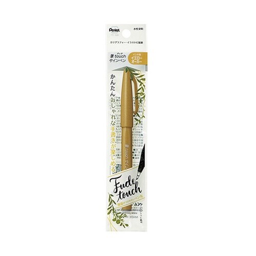 ぺんてる 筆ペン 筆タッチサインペン イエローオーカー パック入り XSES15C−Y 1本 A09G-2414