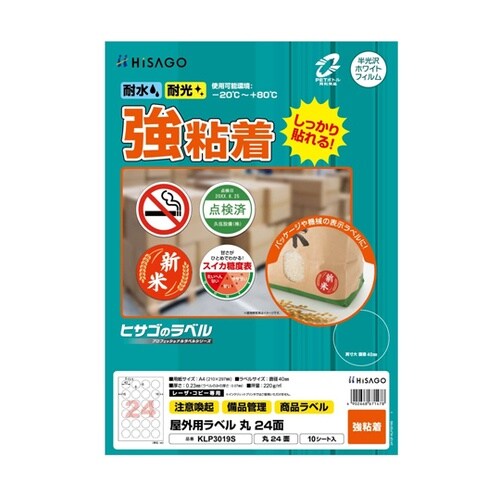 ヒサゴ 屋外用ラベル A4 丸 24面 1冊(10シート入) KLP3019S 1冊 A09G-2492