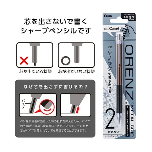 シャープペンシル オレンズ メタルグリップ 0.2mm ブラウン軸 XPP1002G2−RE 1本