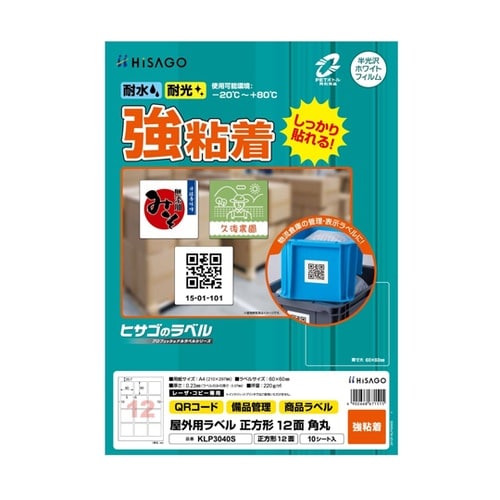 ヒサゴ 屋外用ラベル A4 正方形 12面 角丸 1冊(10シート入) KLP3040S 1冊 A09G-2573