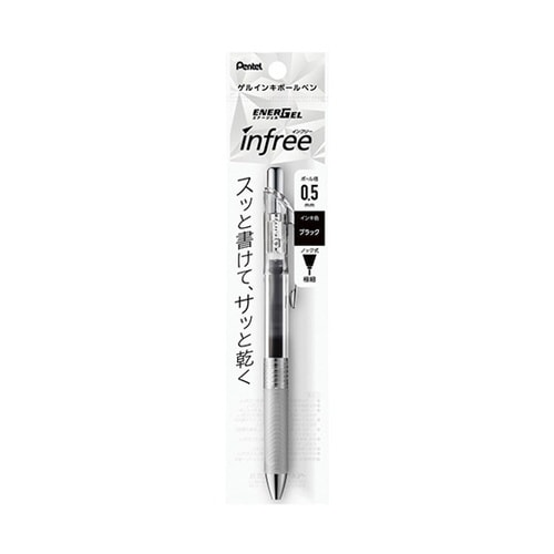 ぺんてる ゲルインキボールペン エナージェル インフリー 0.5mm クリア軸 ブラック パック入り XBLN75TL−A 1本 A09G-2598