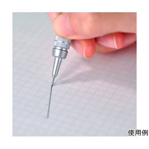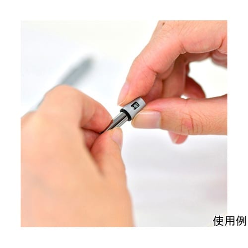 筆記時に線や文字を確認できる細身のペン先。安定した筆記を得るための低重心設計。定規をあてやすい4mm先端パイプ。手のすべりを防ぐローレット加工。芯の硬度が使い分けできる表示窓付き。