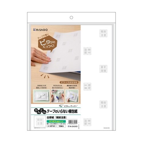 ヒサゴ テープのいらない梱包紙 白厚紙 開封注意(ネコポス対応サイズ) 1冊(10枚入) KP101 1冊 A09G-2731