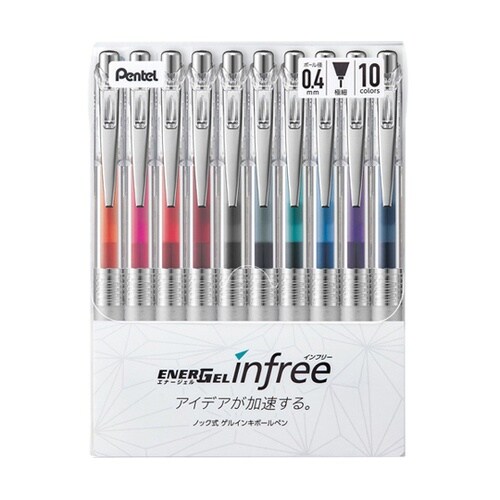 ぺんてる ゲルインキボールペン エナージェル インフリー 0.4mm セット 10色 BLN74TL−10 1セット A09G-2746