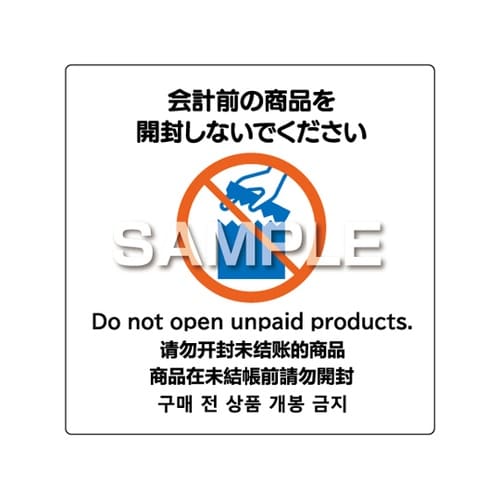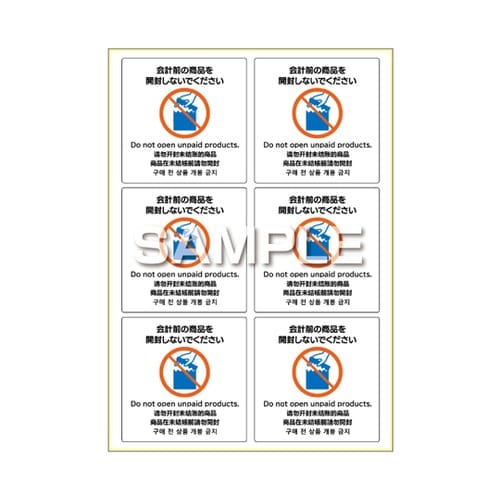 はがせる!ピタロングステッカー 「会計前の商品を開封しないでください」 A4 6面 KLS092 1シート