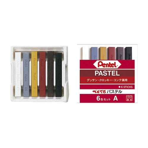 ぺんてる パス ぺんてるパステル(デッザン・クロッキー・コンテ画用) 低彩度タイプ セット 6色 GA−6AD 1セット A09G-2799