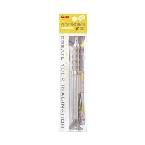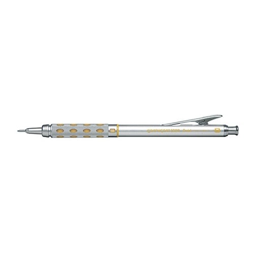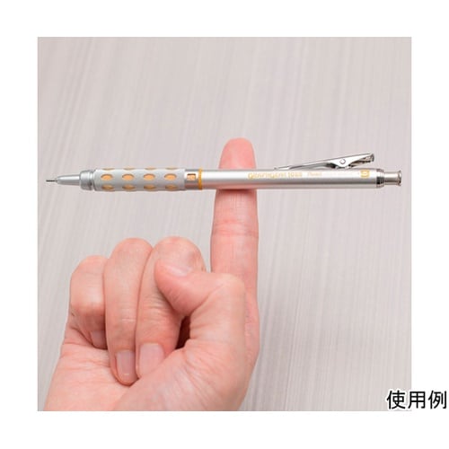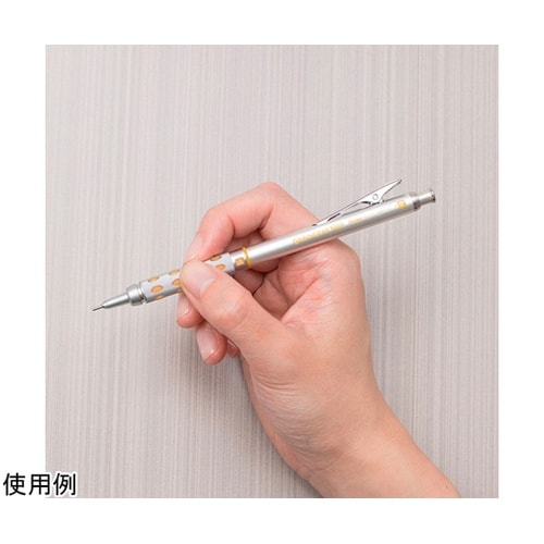 先端部分を収納できる安心設計。グリップ部はゴムグリップとローレット加工を施した新考案のデュアルグリップ採用。クリップは筆記時は先端がボディに半収納される新設計。芯硬度表示窓付き。 |