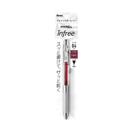 ぺんてる ゲルインキボールペン エナージェル インフリー 0.4mm クリア軸 バーガンディ パック入り XBLN74TL−BG 1本 A09G-2839
