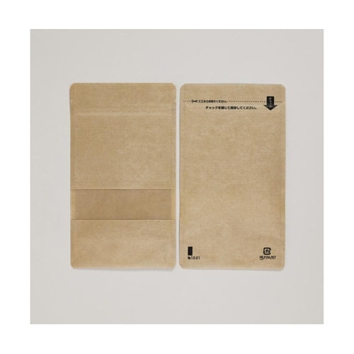 未晒クラフト紙を使用したスタンドチャック袋で、自然な風合いの演出が可能です。バリアフィルムを使用していますので、脱酸素剤、乾燥剤の封入に適しています。 |
