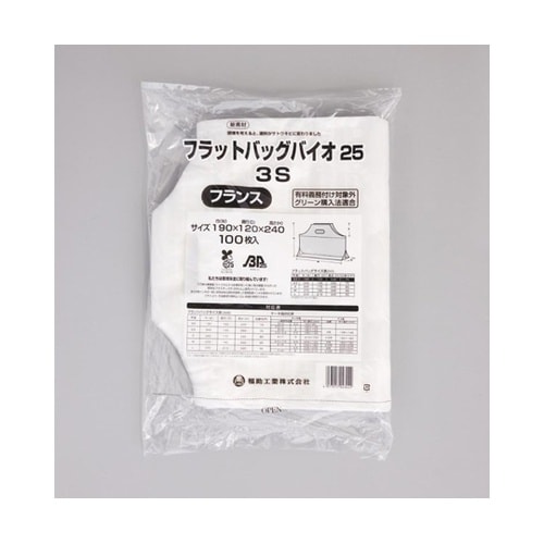 バイオマスレジ袋 フラットバッグバイオ25 3S フランス 1ケース(100個×10セット入) 0486851 1ケース