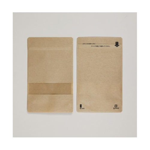未晒クラフト紙を使用したスタンドチャック袋で、自然な風合いの演出が可能です。バリアフィルムを使用していますので、脱酸素剤、乾燥剤の封入に適しています。 |