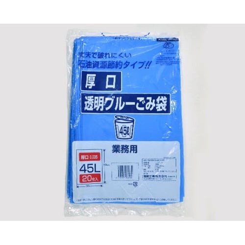 丈夫で破れにくい業務用厚口透明ブルーゴミ袋。石油資源節約タイプ。 |