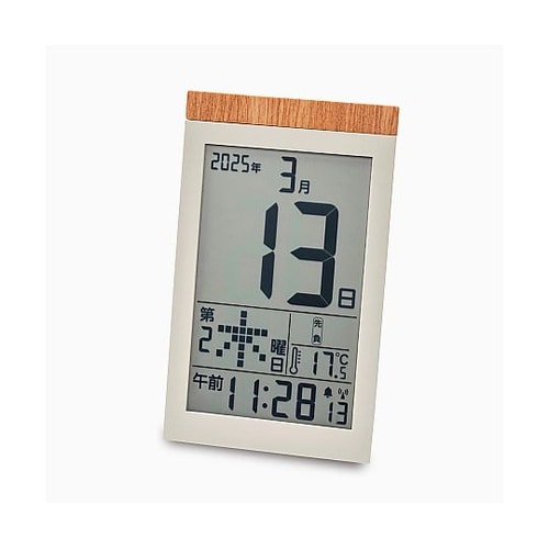 「今」が自然とわかるシンプルで機能的なカレンダークロックです。大きくはっきりした日付表示、暮らしに便利な「第何曜日」や六曜表示機能を搭載。 |