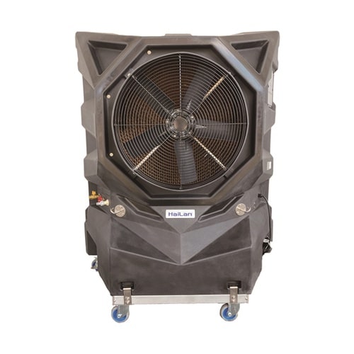 冷たい空気を大型ファンで広範囲に送風。空調機で対応しにくい大空間の作業エリアに適しています。据付工事不要。