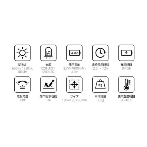 充電式で軽量設計のため持ち運びに便利で、カメラ用三脚に取付可能な1/4インチネジ穴搭載です。モバイルバッテリー機能で、スマホなどの充電ができます。充電中も点灯可能です。暗所での現場作業に。 |