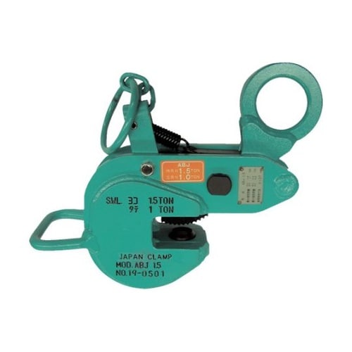 反転作業が可能で、そのまま縦吊りも可能です。容量が大幅にアップしています。(大きさは従来の横吊り型クランプとほとんど変わらず横吊り容量は50%アップです)H形鋼などの建て方や運搬。 |