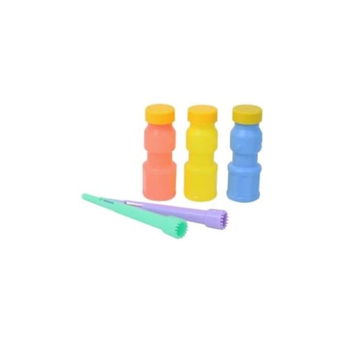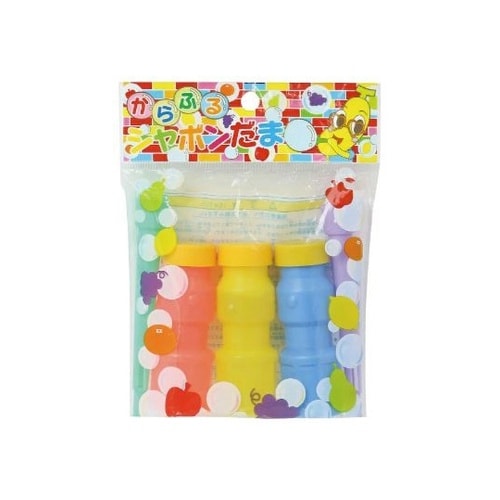 シャボン液3本と吹き出しストローが2本ついたベーシックなセットです。シンプルでもたっぷり楽しめます!子供向けのイベント、販促として年間を通しておすすめです。 |