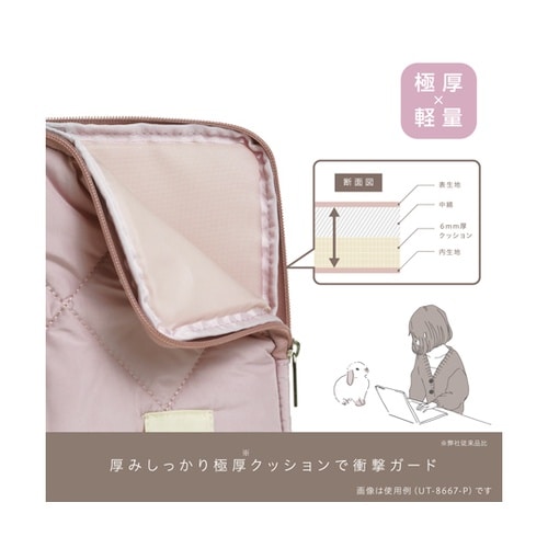 極厚クッション+もこもこ中綿で大切なノートPCを守る選べる楽しさがある4色の明るいカラー展開キルティング素材採用。もこもこフォルムが大人可愛い。