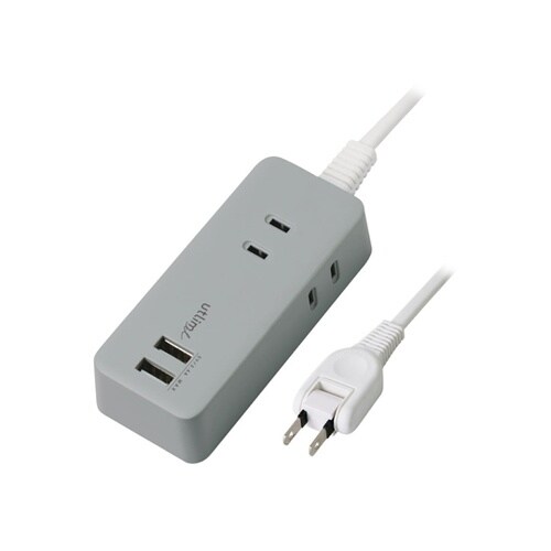 2つのUSBポートと3つのACコンセントで複数の機器を同時にサポート落ち着いたカラーリングでインテリになじむシンプルなデザイン。 |
