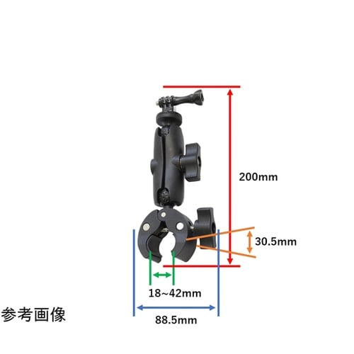 GoProカメラ用マウントとクランプベースを繋いでいるソケットアームの3種類がセットになったマウント。 |