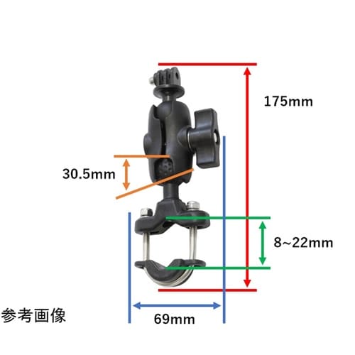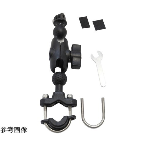 GoProカメラ用マウントとU字クランプベースを繋いでいるソケットアームの3種類がセットになったマウント。 |