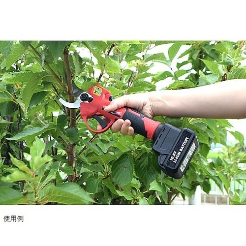 庭木・果樹の剪定に1回の充電でφ7ー16mmの生木を約1,000回切断することが可能です。 |