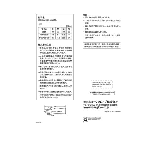 手にフィットする、薄手タイプです。ニトリルゴム製のため、油に対して耐久性があります。指と手のひら部分にスベリ止め加工を施しています。食品衛生法に適合しています。