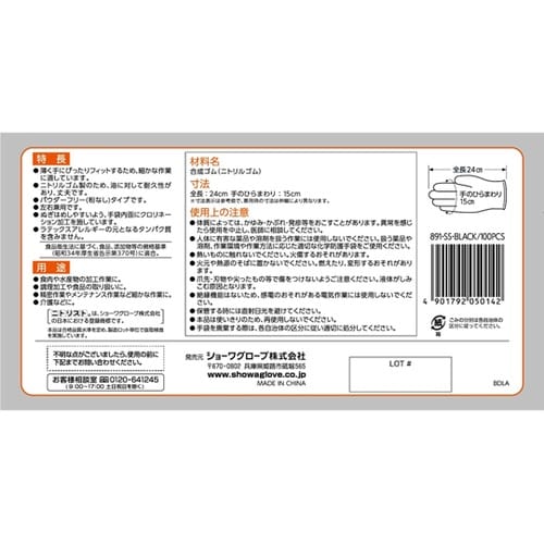891ニトリスト・ブラック 100枚入 SS 1ケース(10函) 891−SS 1ケース