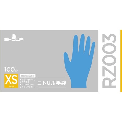 RZ003ニトリル手袋 100枚入 XS 1ケース(10函) RZ003−XS 1ケース