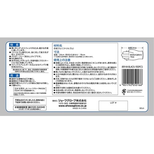 891ニトリスト・ブラック 100枚入 M 1ケース(10函) 891−M 1ケース