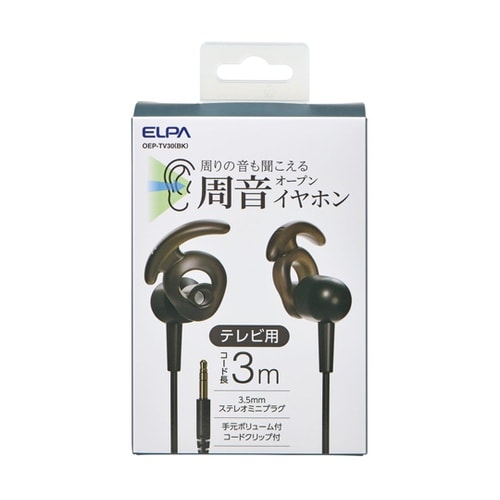 朝日電器 オープンイヤホン テレビ3m ブラック OEP−TV30(BK) 1個 A09G-8915