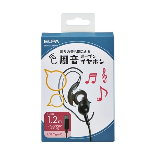 朝日電器 オープンイヤホン タイプC ブラック OEP−C12(BK) 1個 A09G-8922