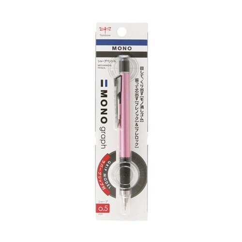 モノ品質の回転繰り出し式消しゴム搭載。振って芯を出すフレノック機構、誤ノックを防ぐフレロック機構付き。しっかり握れるラバーグリップ・スタイリッシュで丈夫な金属クリップ採用。 |