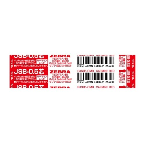 ゼブラ シャーボX用 JSB−0.5芯 カーマインレッド RJSB5−CMR 1本 A09H-0803