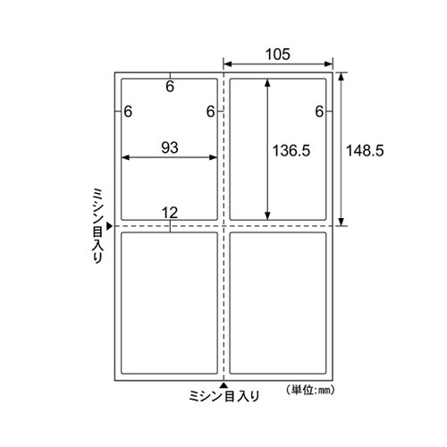 A4台紙ごとミシン目切り離しができるラベル 4面 余白あり 角丸 1パック(20シート入) OP3302N 1パック