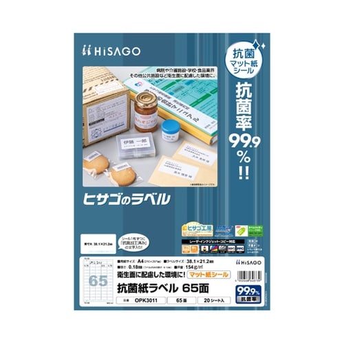 抗菌紙ラベル A4 65面 角丸 1パック(20シート入) OPK3011 1パック