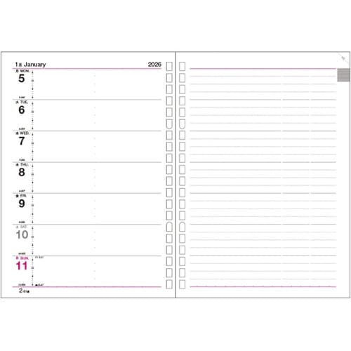 リングバインダーのリフィルとして使える見開き1週間ダイアリーです。 |