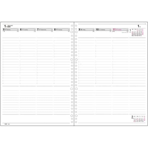 リングバインダーのリフィルとして使えるバーチカルタイプの見開き1週間ダイアリーです。 |