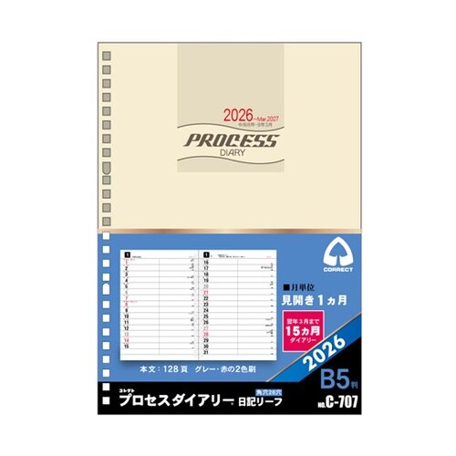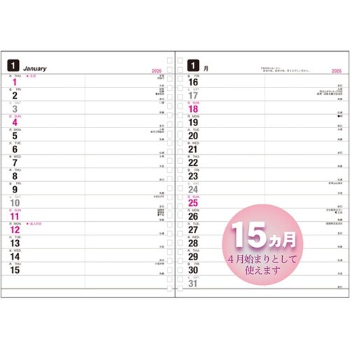 リングバインダーのリフィルとして使える見開き1ヶ月ダイアリーです。 |